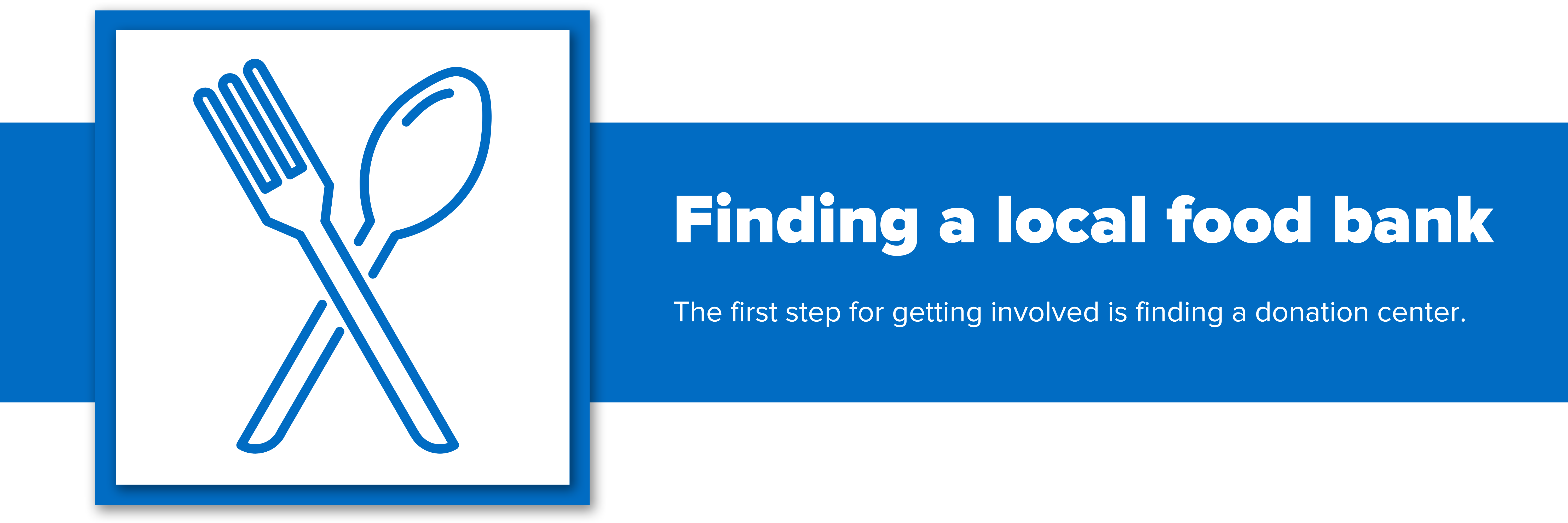 The first step to get involved is finding your local food bank, shelf, or pantry. There are several tools you can use to find one nearby: