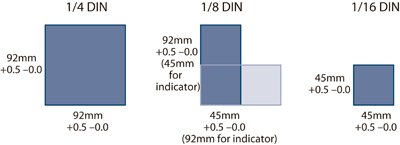 Controllers come in several standard sizes that are referred to by DIN numbers such as 1/4 DIN, 1/8 DIN, 1/16 DIN and 1/32 DIN. DIN is an acronym for the roughly translated "Deutsche Institut fur Normung," a German standards and measurements organization. For our purposes, DIN simply indicates that a device complies with a generally accepted standard for panel dimensions.
